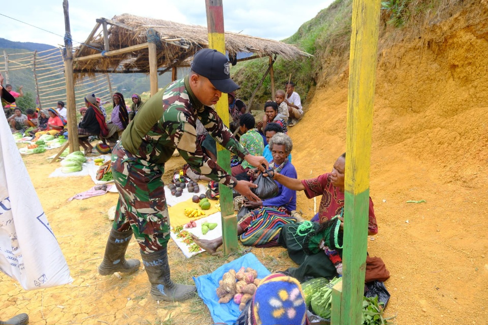 "Biasanya saya harus menunggu agar dagangan laku, tapi hari ini langsung habis diborong Bapak Tentara." ungkapnya Mama Kristin.