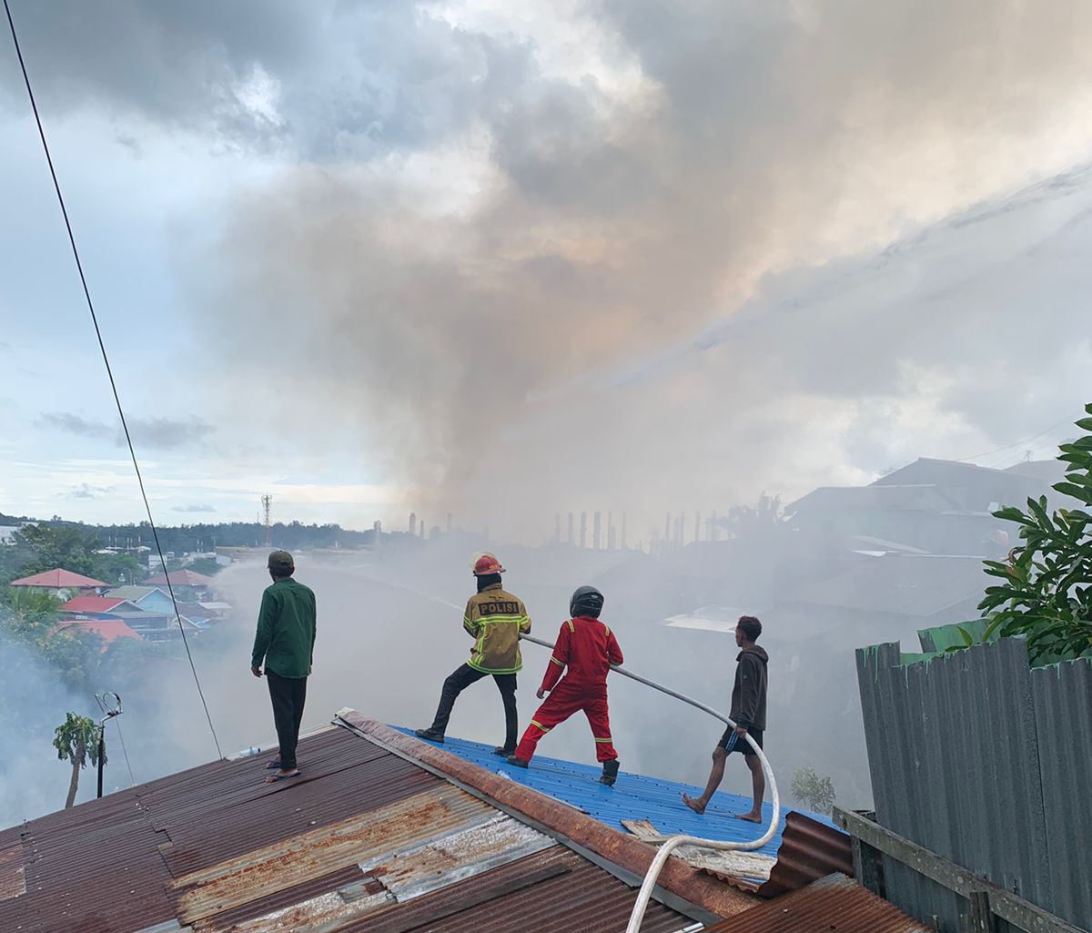 Api dengan cepat membesar dan menimbulkan asap hitam pekat yang membumbung tinggi ke udara. Peristiwa ini terjadi di belakang Masjid Al-Fallah. Warga terlihat panik dan berhamburan menyelamatkan diri serta berusaha mengevakuasi barang-barang berharga dari rumah mereka.