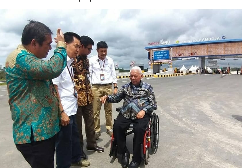 Meski di kursi roda, Pak Awang menghadiri peresmian jalan tol Balikpapan-Samarinda oleh Presiden Jokowi.(Ist)