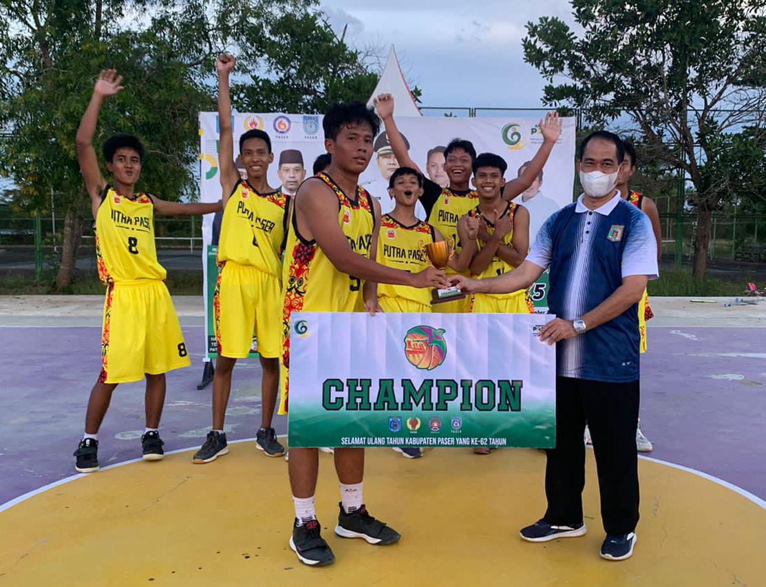KaltimKita.com, TANA PASER - Turnamen Bola Basket di Kabupaten Paser yang memeriahkan Hari Jadi Kabupaten Paser ke-62, resmi telah usai. Dua kategori pertandingan telah berakhir 27 Desember 2021. Untuk pelajar putra 5x5 dimenangkan juara satu oleh SMA 1 Tana Paser. Sedangkan kategori umum 3x3 juara pertama diraih oleh Daya Taka Club (DTC) Basketball.