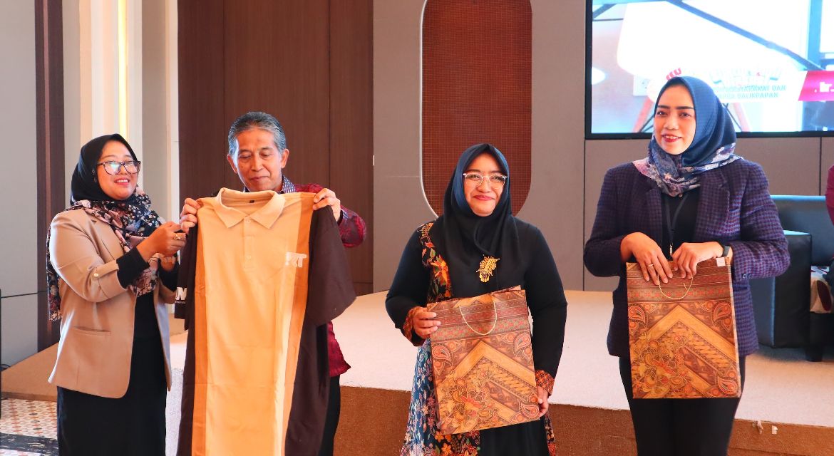 Dr Agung Sakti Pribadi (kedua dari kiri) menyerahkan kaus SMART RT kepada Lurah.