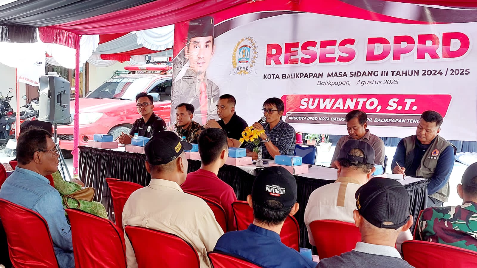 Kaltimkita.com, BALIKPAPAN - Anggota Komisi II DPRD Balikpapan, Suwanto, menggelar Reses masa sidang III tahun 2024/2025 di halaman kantor Kelurahan Karang Rejo, Kecamatan Balikpapan Tengah, Jumat (29/8/2025).