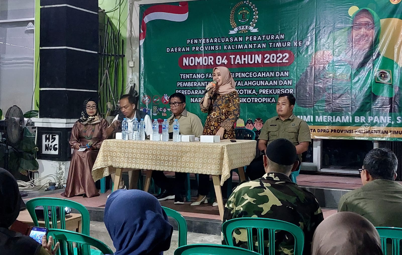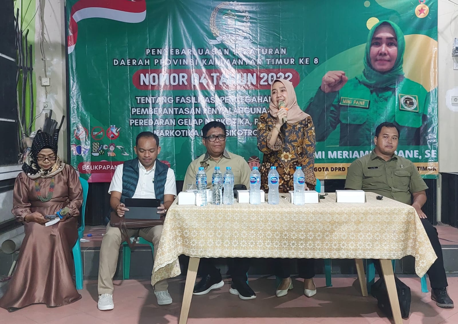 Kaltimkita.com, BALIKPAPAN - Anggota DPRD Provinsi Kalimantan Timur Dapil Balikpapan, Mimi Meriami BR Pane, SE, kembali menggelar Sosialisasi Penyebarluasan Peraturan Daerah (Sosper) ke-8 nomor 04 tahun 2022, tentang Fasilitasi Pencegahan dan Pemberantasan Penyalahgunaan dan Peredaran Gelap Narkotika, Prekursor Narkotika dan Psikotropika.