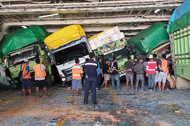 Menurut Kepala KSOP Kelas I Balikpapan, Capt. Waku Frederik Karuntu, insiden itu bermula saat proses buka rampdoor haluan untuk kegiatan bongkar kendaraan truk Gol. 4,5,6 posisi cardeck 3, terindikasi kapal posisi miring ke kanan dan memicu kendaraan truk dan muatan roboh.