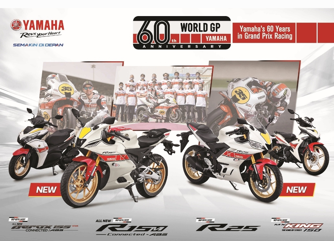 "Perayaan 60 tahun keikutsertaan Yamaha di kompetisi balapan dunia kian terasa melalui penyematan livery khusus pada motor-motor berkarakter sport yang mewakili semangat racing passion.