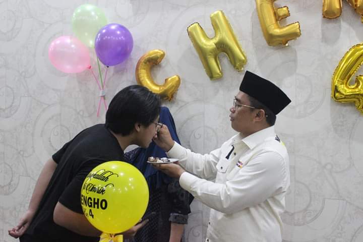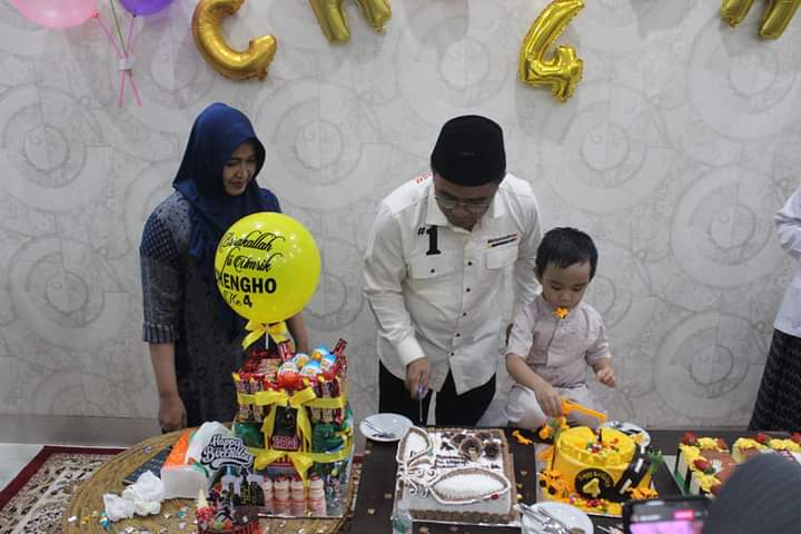 “Pertama-tama saya ucapkan terima kasih mendalam atas ucapan selamat ultah dari istri tercinta juga anak-anak saya dan kami sekeluarga sangat bersyukur sekali yang mana di momen bersamaan ini bukan ayahnya saja yang berulang tahun, akan tetapi salah satu putra kami juga tanggal lahirnya sama seperti saya. Kalau begitu saya juga mengucapkan selamat ultah kepada putraku tercinta Muhammad Chengho Al Banjari. Semoga sehat sehat selalu dan menjadi anak yang soleh. Amin.,”ungkap paslon nomor satu Makin Kutim Mahyunadi.