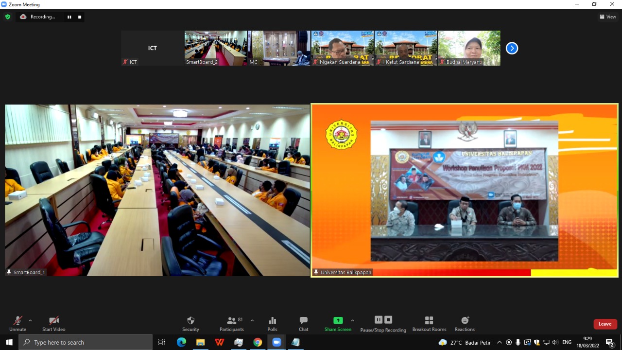 ”Kegiatan workshop ini dilakukan karena ada beberapa juklak PKM yang terbaru karena disesuaikan dengan program MBKM. Sebab akan ada konversi SKS bagi mahasiswa yang ikut berpartisipasi. Tahun 2022 kita akan mempersiapkan Peksiminas. Kuota Proposal untuk Universitas Balikpapan Tahun 2022 untuk PKM yaitu 40 Proposal,“ ujar Ir Rahmat Rusli.
