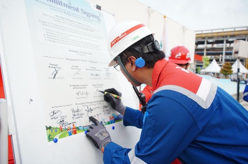 “Di kilang dipenuhi dengan alat-alat yang memiliki tekanan tinggi, tegangan tinggi dan berbagai potensi bahaya lainnya. Siapa pun, tanpa melihat jabatan, berhak dan wajib saling mengingatkan apabila melihat pekerjaan yang tidak aman,” tegas Anto.