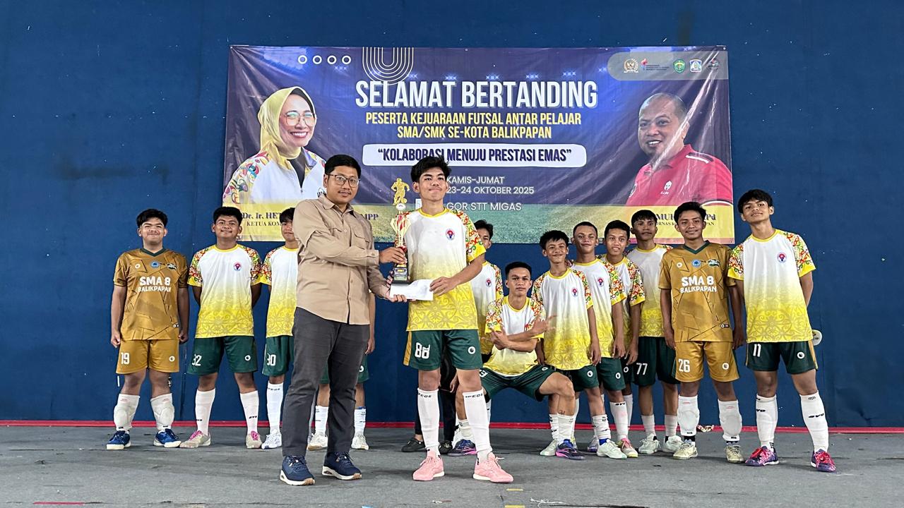 KaltimKita.com, BALIKPAPAN - SMAN 8 sukses meraih juara Igornas Cup 2025 dalam ajang Turnamen Futsal se-Balikpapan garapan Ikatan Guru Olahraga Nasional (Igornas) Balikpapan, Kemenpora, dan Komisi X DPR RI. Berlangsung di Lapangan STT Migas, Jumat (25/10/2025), di babak puncak anak asuhan Aulia Rahman menang tipis 1-0 atas SMAN 3 Balikpapan.
