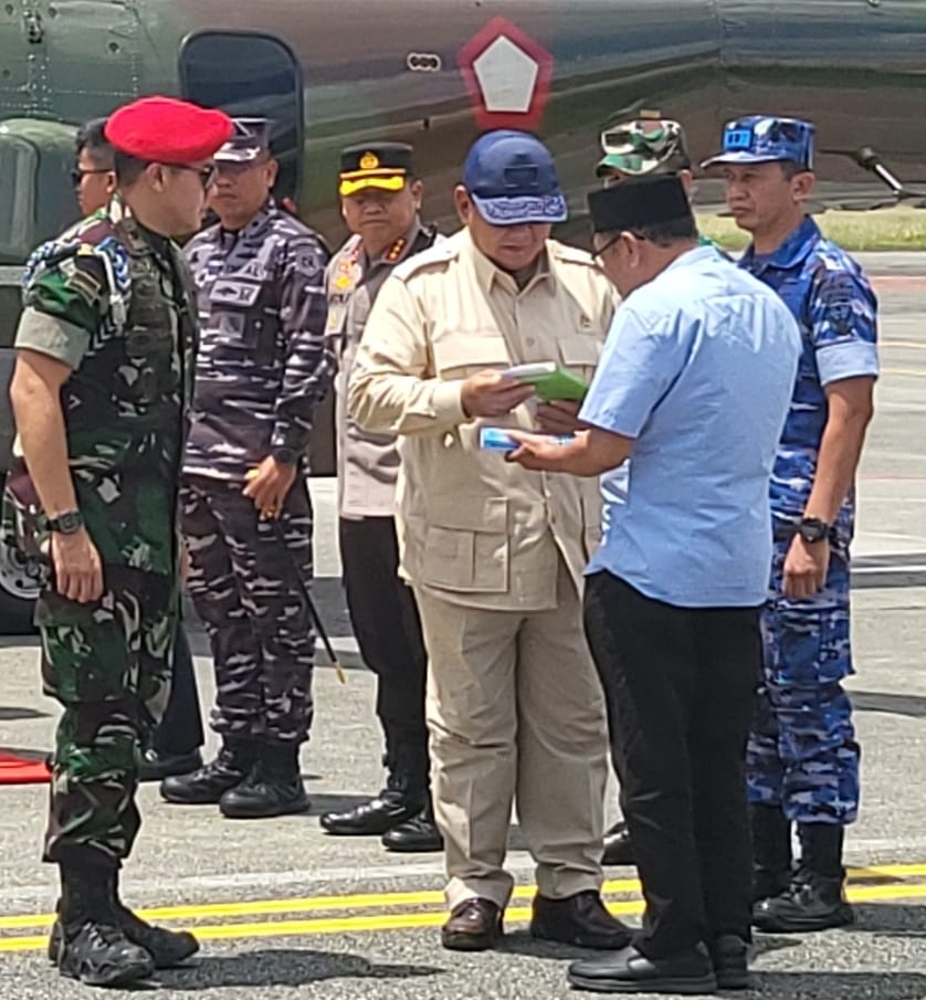 KaltimKita.com - Rektor uniba Isradi Zainal menyerahkan buku IKN 1 & 2 yang ditulisnya ke Menteri Pertahanan Prabowo Subianto di Bandara Sepinggan Balikpapan, Senin (18/3/2024). Sebelumnya...