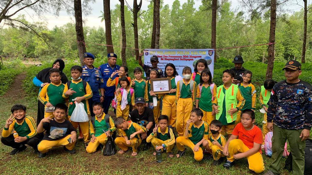 Ajak Peduli Alam Sejak Dini, SD Kemala Bhayangkari Balikpapan Lakukan Penanaman Mangrove
