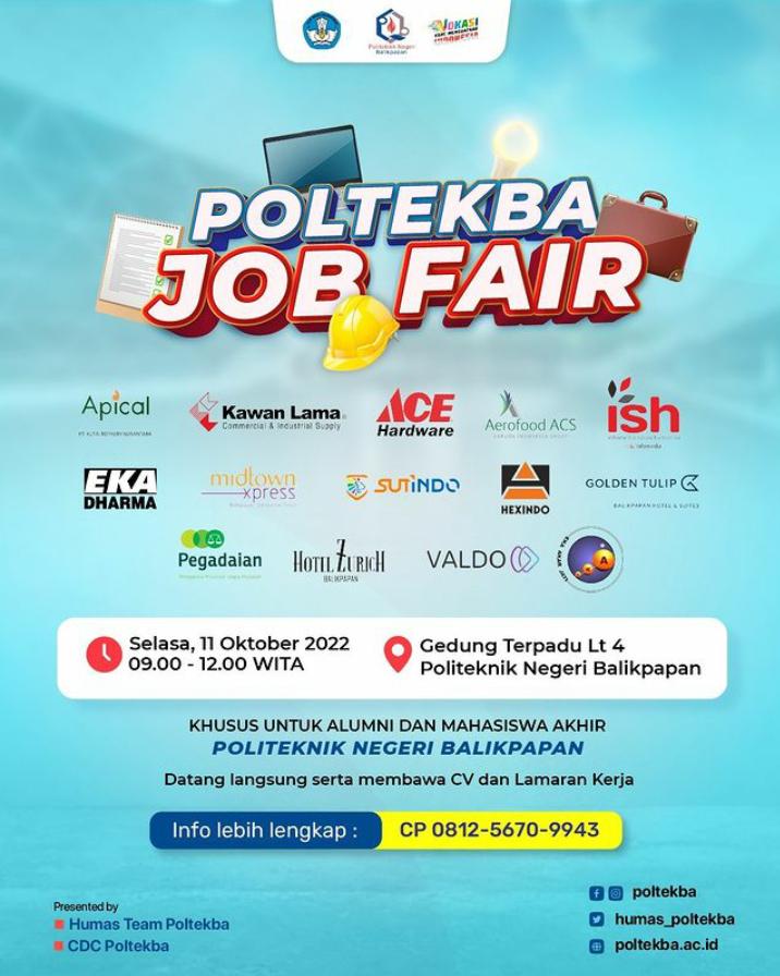 KaltimKita.com, BALIKPAPAN - Ratusan mahasiswa dan alumni Politeknik Negeri Balikpapan akan meramaikan job fair yang diselenggarakan di Gedung Terpadu Lantai Empat, Selasa (11/10/2022)...