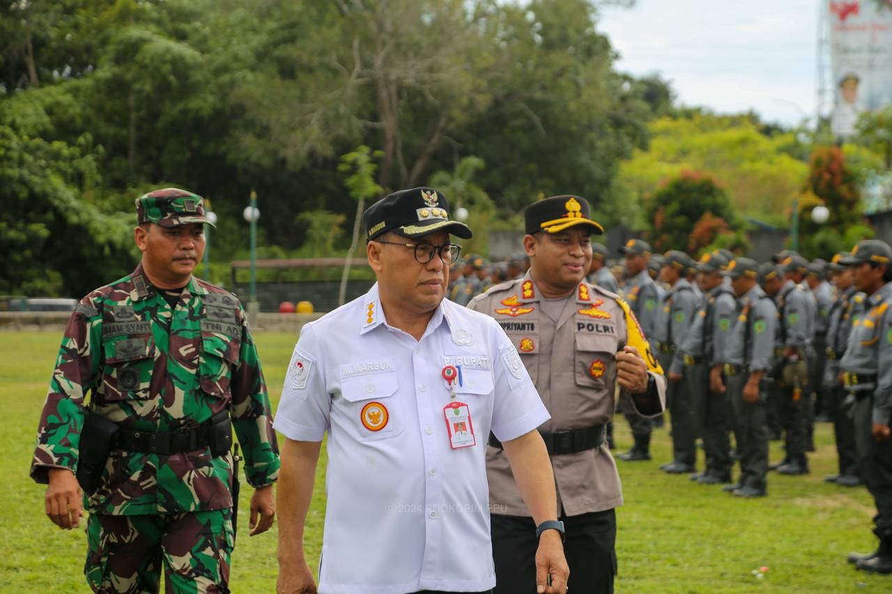 Ribuan personel Linmas yang di bawah naungan Dinas Penanggulangan Kebakaran dan Penyelamatan (DPKP) PPU telah dilakukan penyerahan bawah kendali (BKO) Satuan Linmas ke Polres PPU saat apel gelar pasukan Satuan Linmas di depan Kantor Bupati PPU, Rabu (7/2/2024).