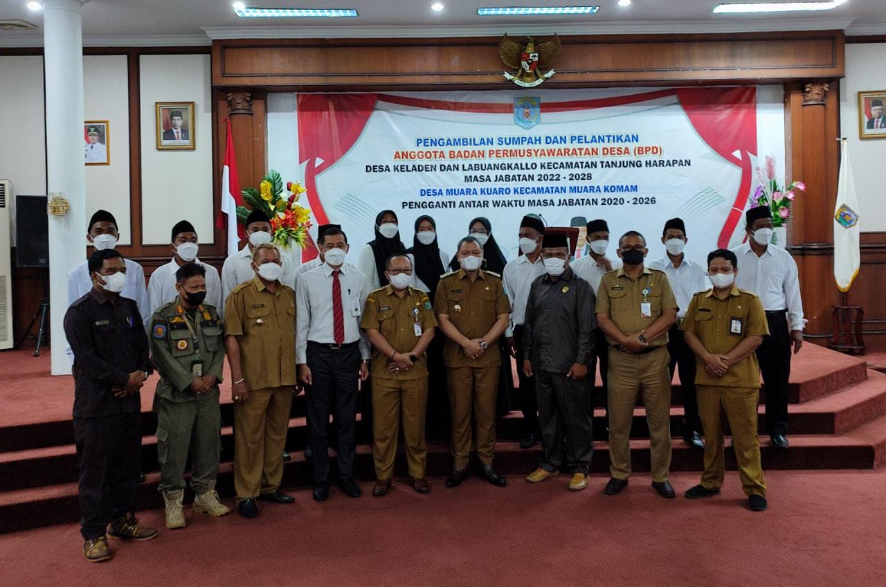 Anggota BPD yang dilantik, yakni Desa Keladen dan Desa Labuangkallo Kecamatan Tanjung Harapan periode 2022-2028. Serta Pengganti Antar Waktu (PAW) BPD Desa Muara Kuaro, Kecamatan Muara Komam masa jabatan 2020-2026.