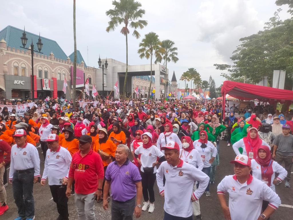 JALAN sehat Kerukunan Keluarga Sulawesi Selatan (KKSS) Balikpapan sukses luar biasa. Hampir 20 ribu peserta mengikuti acara tersebut yang berlangsung di halaman parkir Mall Fantasi, Balikpapan Baru, Minggu (18/12). Kebetulan cuaca teduh sepanjang acara, jadi semua peserta bertahan sampai semua hadiah habis dibagikan.