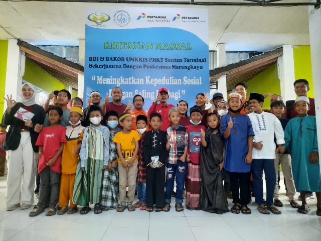 Kaltimkita.com, BALIKPAPAN – Dalam rangka kegiatan peringatan HUT ke-65 PT Pertamina (Persero) dan HUT ke-7 PT Pertamina Hulu Indonesia (PHI), anak perusahaan di bawah naungan PHI menggelar khitanan masal secara serentak yang dilakukan di sejumlah wilayah kerja PT Pertamina Hulu Kalimantan Timur (PHKT) yakni di Balikpapan, Lawe-Lawe Terminal, Santan Terminal, PT Pertamina EP (PEP) Tarakan Field dan PT Pertamina EP (PEP) Bunyu Field.