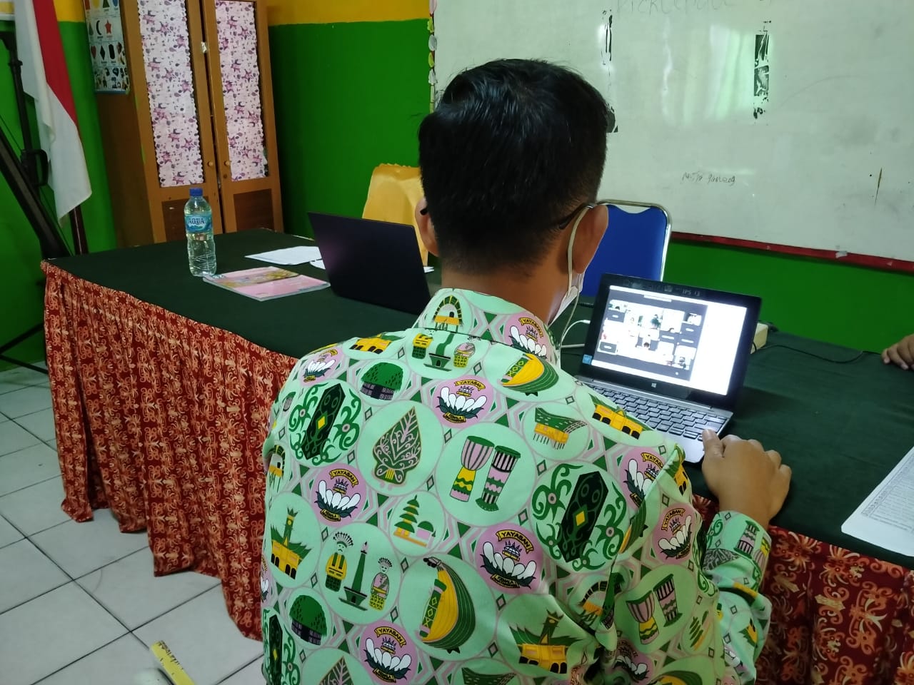 Salah satu guru SD Kemala Bhayangkari saat mengawasi ujian sekolah secara daring.