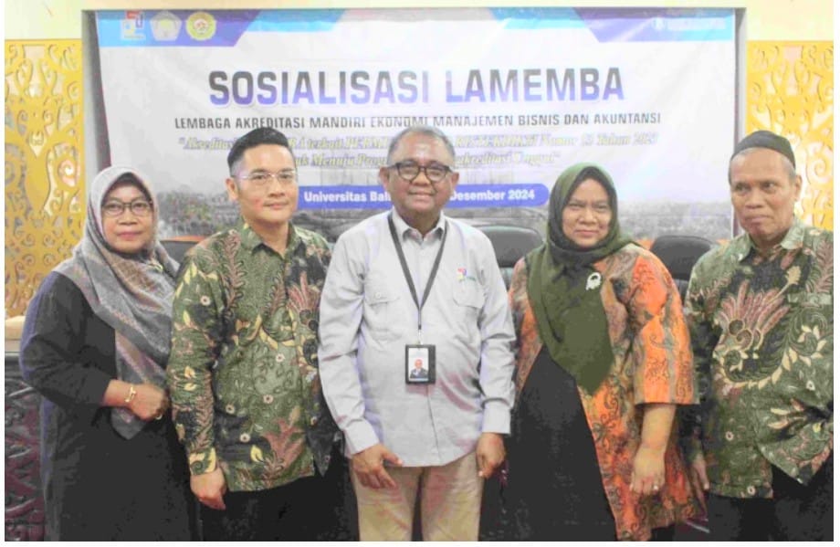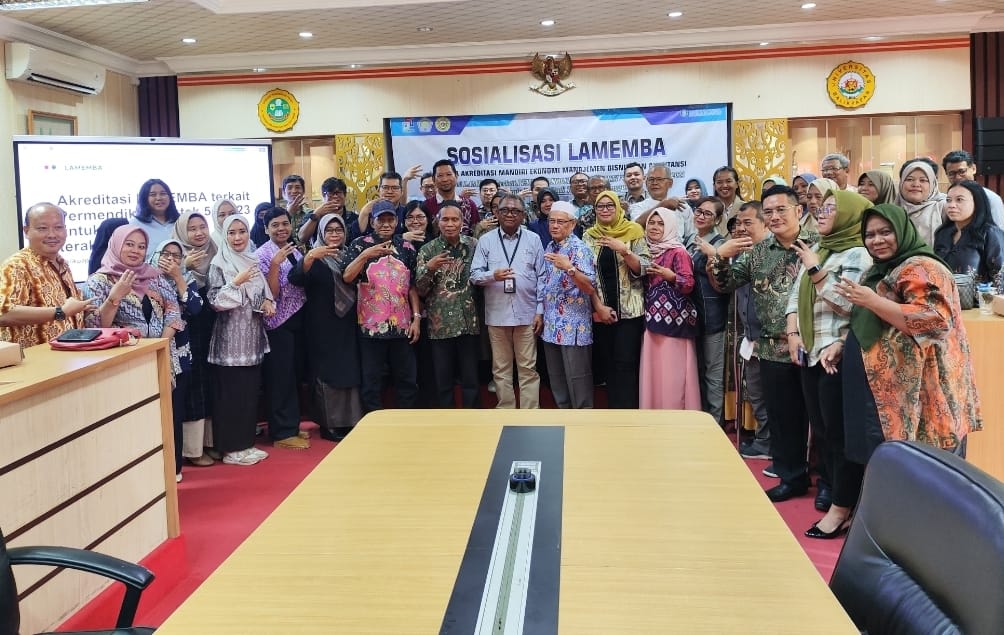 Sosialisasi LAMEMBA dengan tema Menuju Prodi Terakreditasi Unggul berlangsung di Conferences Room Universitas Balikpapan (Uniba), Jumat (6/12). Tidak kurang 100 dosen dan penyelenggara prodi EMBA termasuk dekan FEB di berbagai perguruan tingi di Kaltim terutama Balikpapan, Samarinda, dan Kukar hadir.