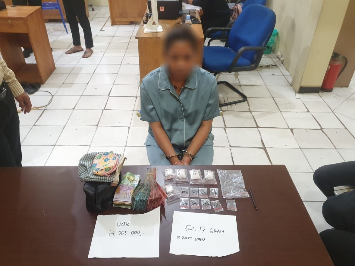 Usai dilakukan penggeledahan, polisi menemukan barang bukti berupa 13 paket sabu dalam kemasan plastik bening dengan berat 52,17 gram.