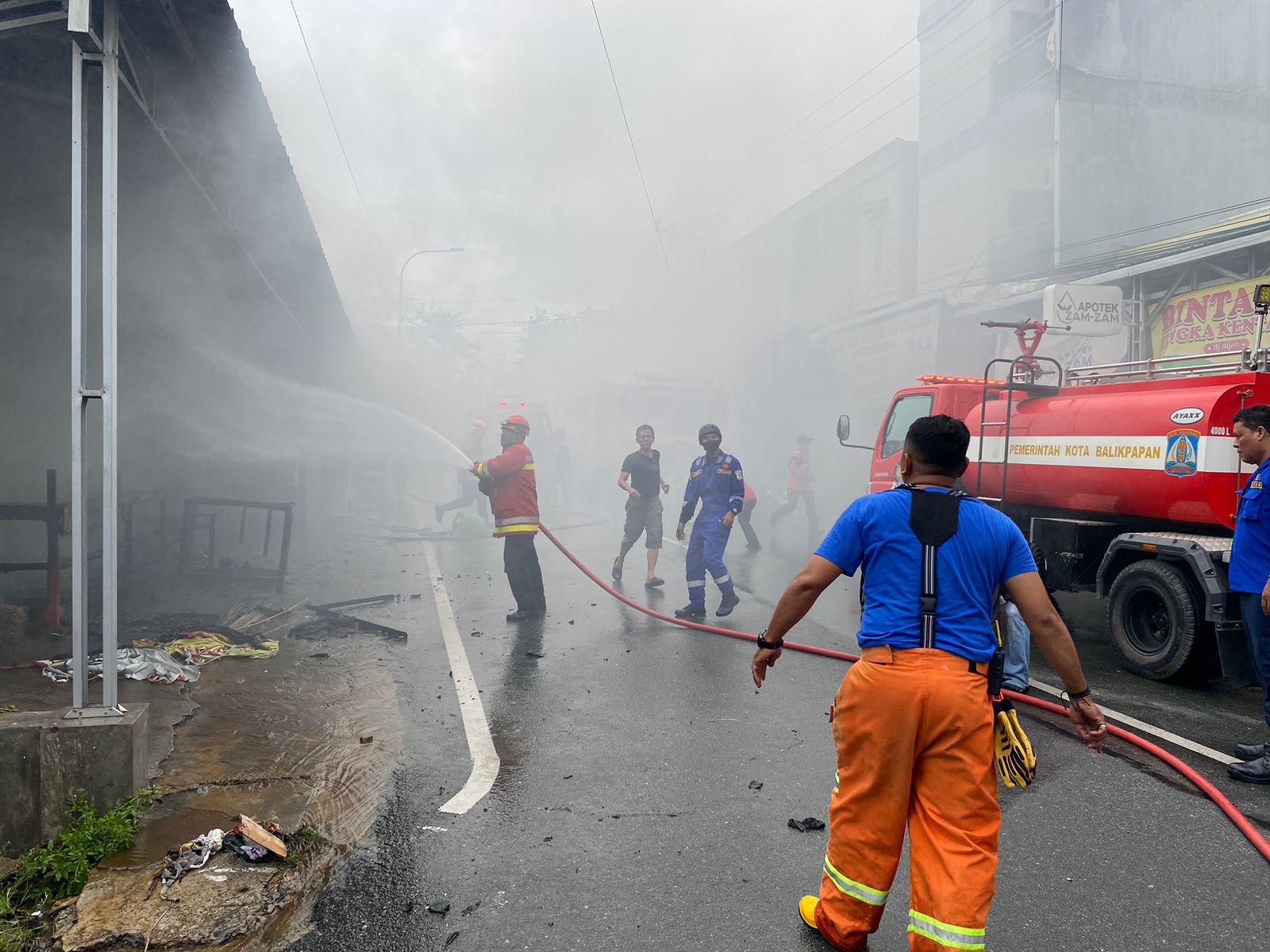 Kepala Badan Penanggulangan Bencana Daerah (BPBD) Balikpapan Usman Ali mengatakan api yang melalap toko kelontong, bengkel motor dan kios telur tersebut berhasil dijinakkan tim pemadam Kurang lebih setengah jam setelah kejadian.