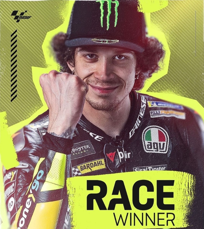 Rider VR46, Marco Bezzecchi, tampil impresif untuk memenangi MotoGP Prancis 2023. Duo Pramac, Jorge Martin dan Johann Zarco finis podium.