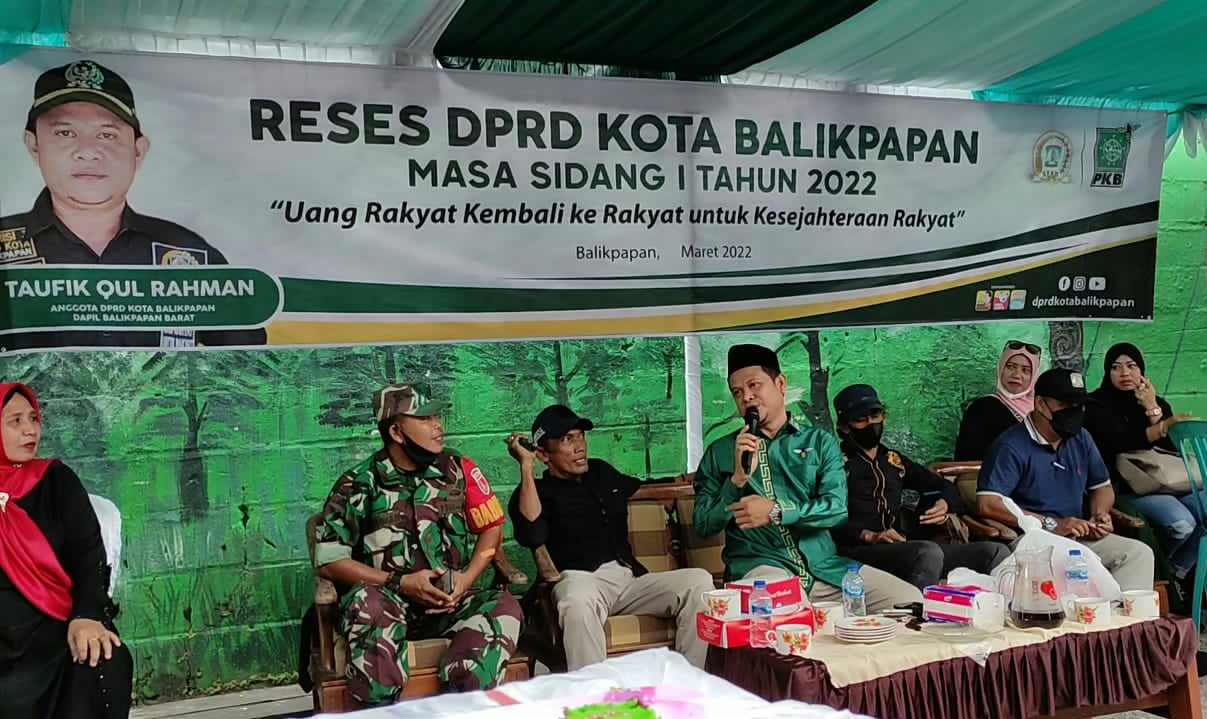 Kaltimkita.com, BALIKPAPAN – Anggota DPRD Kota Balikpapan, Taufik Qul Rahman, dari Partai PKB, Dapil Balikpapan Barat menggelar Reses Masa Sidang I Tahun 2022 di RT 16 Kelurahan Baru Tengah, Kecamatan Balikpapan Barat, pada Senin (28/03/2022) siang.
