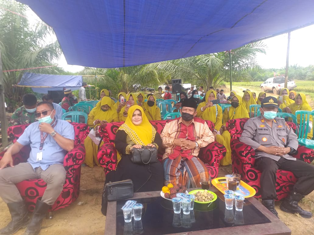 Tampak anggota DPRD Kutim Kidang bersama istri tercinta Mursidah, Kapolsek Bengalon Riyadi, Manager BCRD PT KPC Bengalon Syahrul khidmat ikuti jalannya pelaksanaan panen raya padi sawah