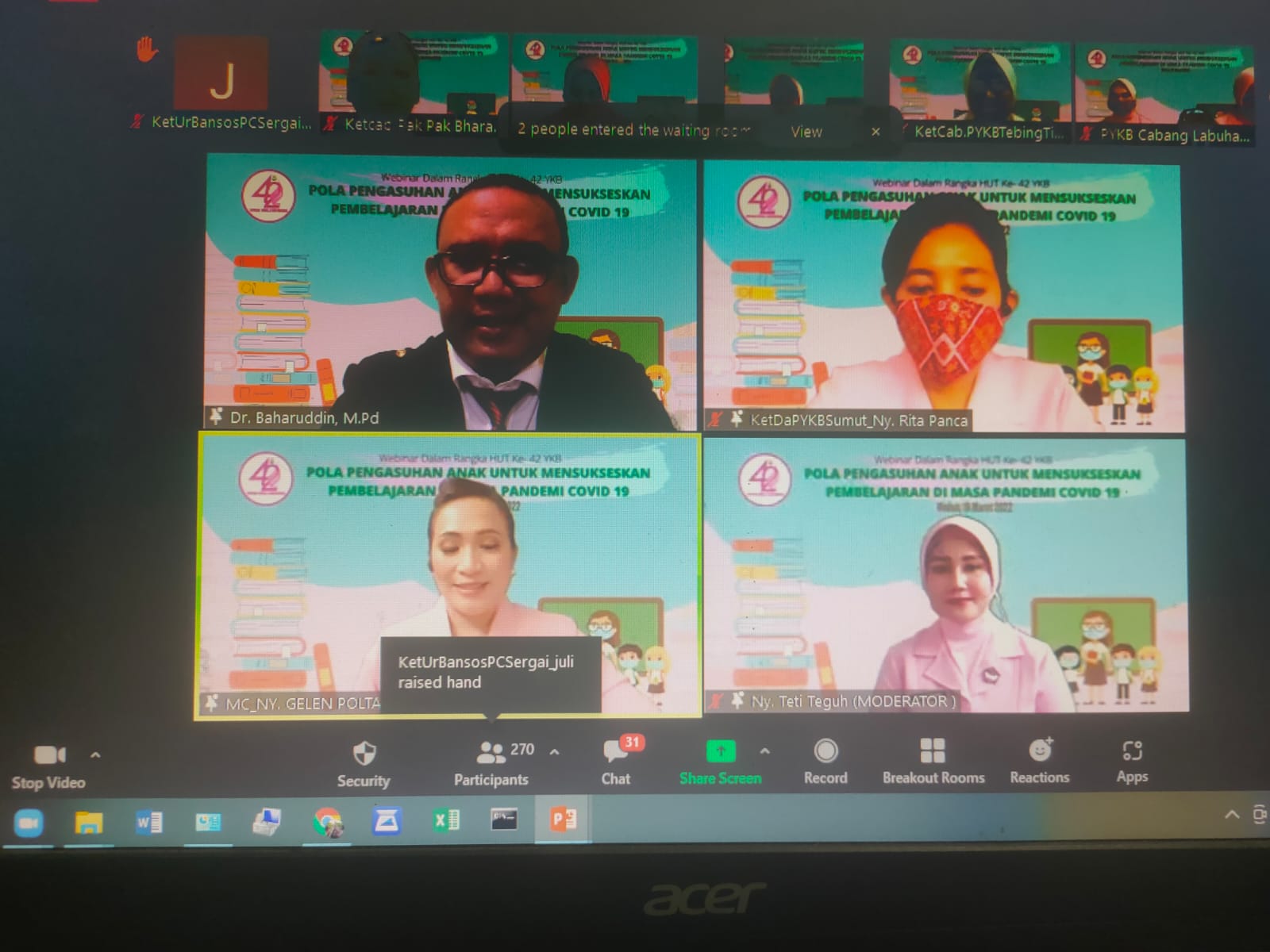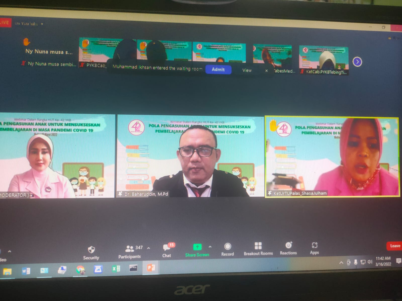 KaltimKita.com, BALIKPAPAN - Kepala SD Kemala Bhayangkari Dr Baharudin Mpd menjadi pemateri di webinar garapan Yayasan Kemala Bhayangkari (YKB) Sumatera Utara. Ya Rabu (16/3/2022) lalu webinar yang mengangkat tema pola pengasuh anak untuk mensukseskan pembelajaran di masa pandemi ini turut dihadiri oleh tenaga pendidik, orang tua murid hingga pengurus YKB.