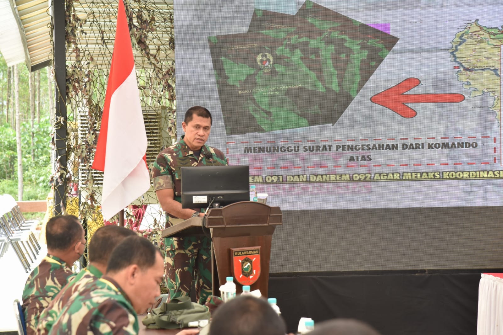 Kaltimkita.com, PENAJAM - Pangdam VI/Mlw Mayjen TNI Teguh Pudjo Rumekso membuka secara resmi pelaksanaan Apel Komandan Satuan TNI Tersebar di wilayah Kodam VI/Mulawarman, bertempat di Titik Nol IKN Nusantara, Sepaku, Penajam Paser Utara, Rabu (18/5/2022).
