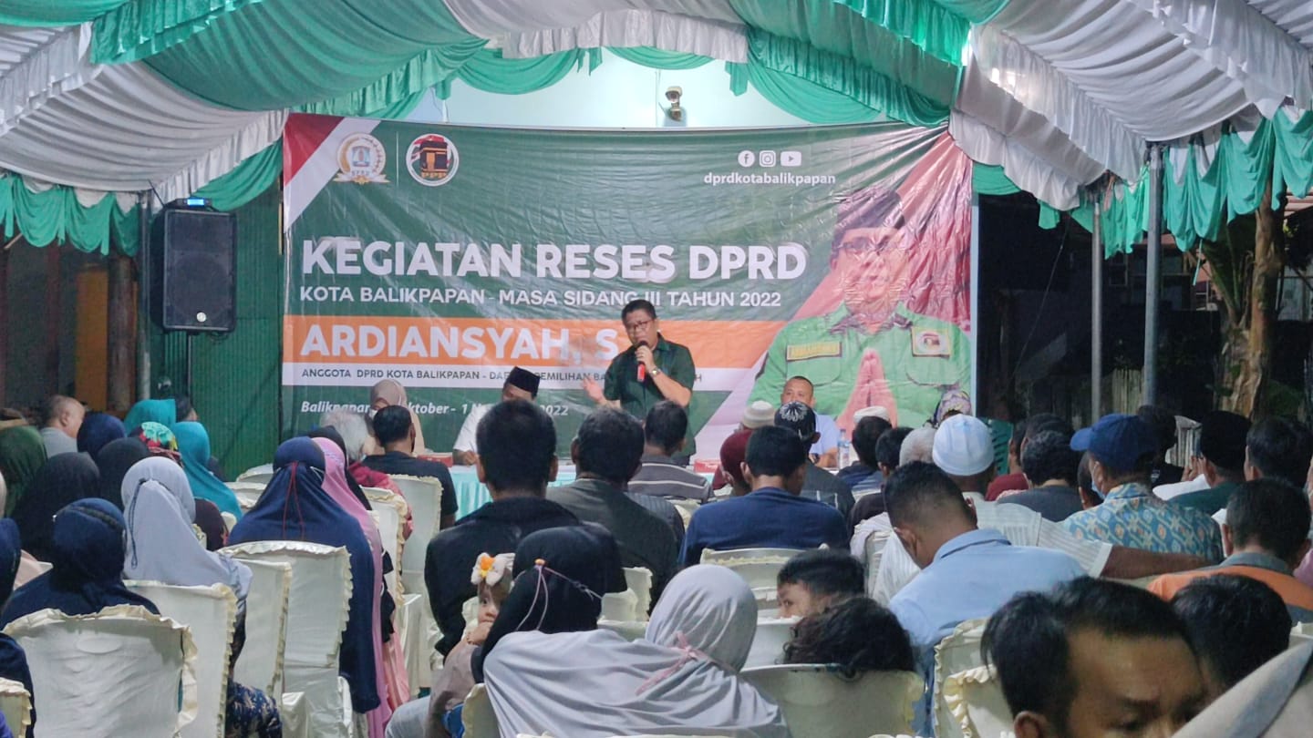 Kaltimkita.com, BALIKPAPAN - Demi menyerap segala aspirasi masyarakat, anggota DPRD Kota Balikpapan, Ardiansyah, melakukan reses di Jl. Martadinata, Kelurahan Mekarsari, Kecamatan Balikpapan Tengah, Senin (28/03/2022).