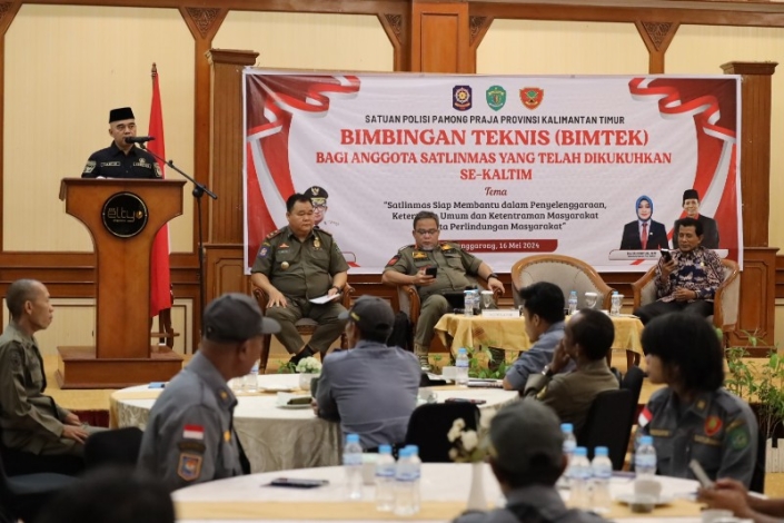 Kaltimkita.com, KUTAI KARTANEGARA – Asisten I Sekretariat Daerah Kabupaten (Setdakab) Kutai Kartanegara (Kukar) Bidang Pemerintahan dan Kesejahteraan Rakyat, Akhmad Taufik Hidayat menjadi narasumber pada kegiatan bimbingan teknis (Bimtek) bagi anggota Satuan Perlindungan Masyarakat (Satlinmas) yang telah dikukuhkan se-Kaltim, di Hotel Grand Elty Singgasana Tenggarong, Kamis (16/5/2024).
