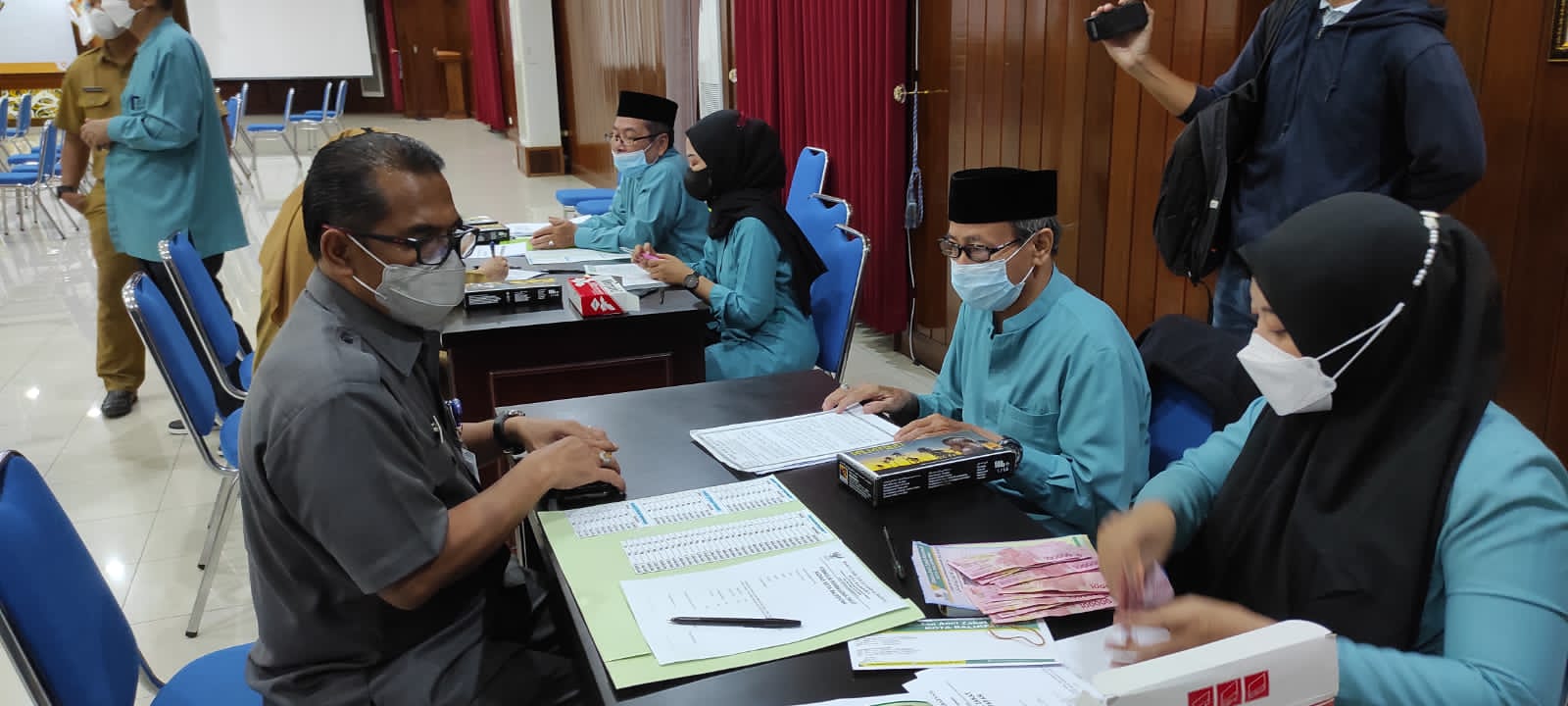 Meski para ASN antusias dalam penyerahaan Zakat, namun kegiatan tersebut tetap dilaksanakan dengan mengedepankan Protokol Kesehatan (Prokes).