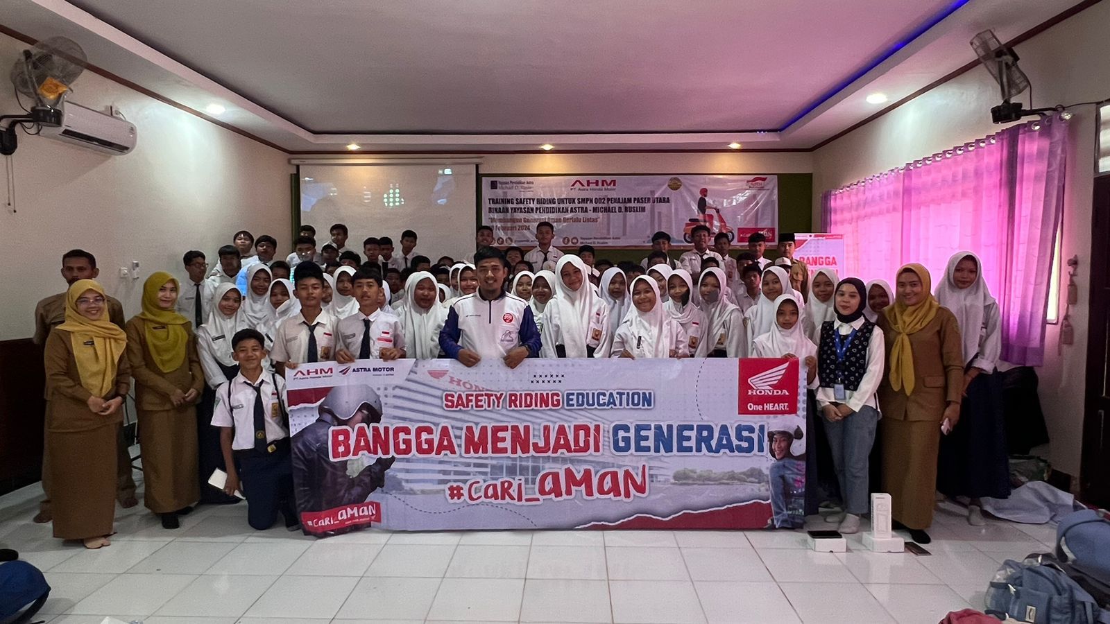 Kaltimkita.com, Balikpapan - Pentingnya keselamatan dalam berkendara terus digaungkan oleh Astra Motor Kaltim 1 dengan terjun langsung ke lapangan. Pada kesempatan kali ini, Sosialisasi safety riding dilakukan kepada siswa-siswi guna menularkan virus campaign #cari_AMAN di Aula SMP Negeri 2 Sepaku, Rabu(22/02).