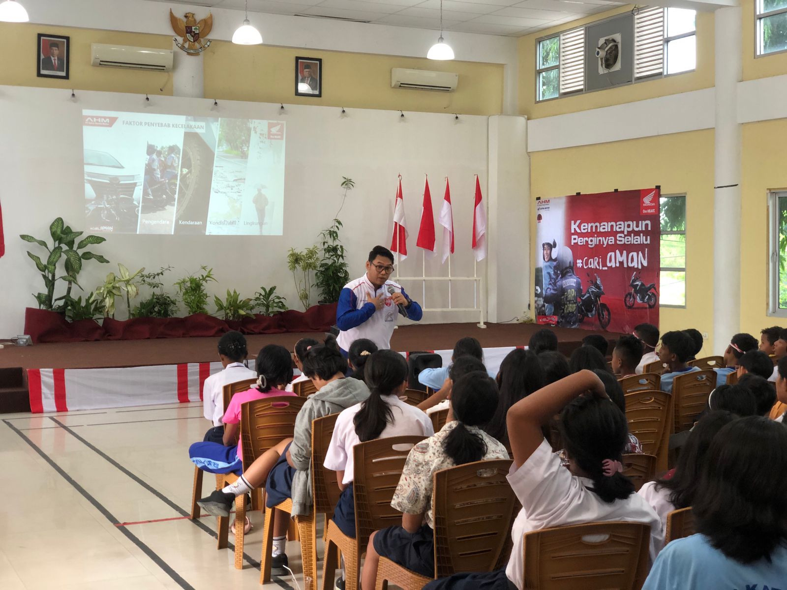 Kaltimkita.com, Balikpapan - Pentingnya keselamatan dalam berkendara terus digaungkan oleh Astra Motor Kaltim 1 dengan terjun langsung ke lapangan. Pada kesempatan kali ini, Sosialisasi safety riding dilakukan kepada siswa-siswi guna menularkan virus campaign #cari_AMAN di Aula SMP Katolik Yos Sudarso Kota Balikpapan, Rabu(16/08).