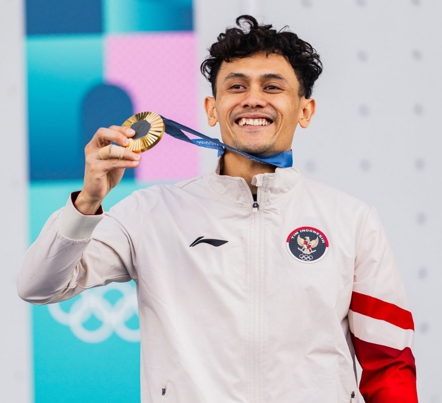 Veddriq mempersembahkan medali emas Olimpiade Paris dari cabor panjang tebing nomor speed putra. Atlet berusia 27 tahun itu mengungguli Wu Peng (China) usai mengemas 4,75 detik pada laga final di Le Bourget Climbing Venue, Kamis (8/8).