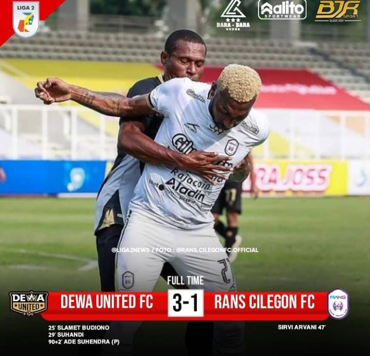 RANS Cilegon mengejar ketertinggalan tiga menit babak kedua berjalan. Sirvi Arvani membobol gawang Dewa United memanfaatkan umpan tarik di kotak penalti. Kedudukan berubah 2-1.