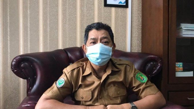 Kadis Kesehatan Kutim Bahrani terus informasikan perkembangan data covid-19 Kutim secara aktual dan update di ruang kerjanya.