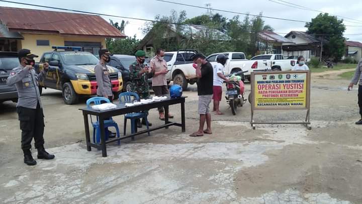 Giat operasi yutisi pendisplinan penggunaan masker lawan covid-19 warga binaan Makodim 0909/Sangatta di Kecamatan Muara Wahau