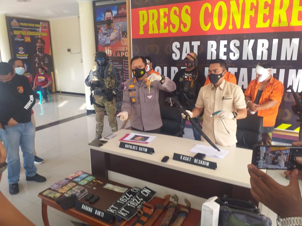 Tampak Kapolres Kutim Welly bersama Kasat Reskrimnya Rauf menunjukan barang bukti aksi kejahatan pencurian