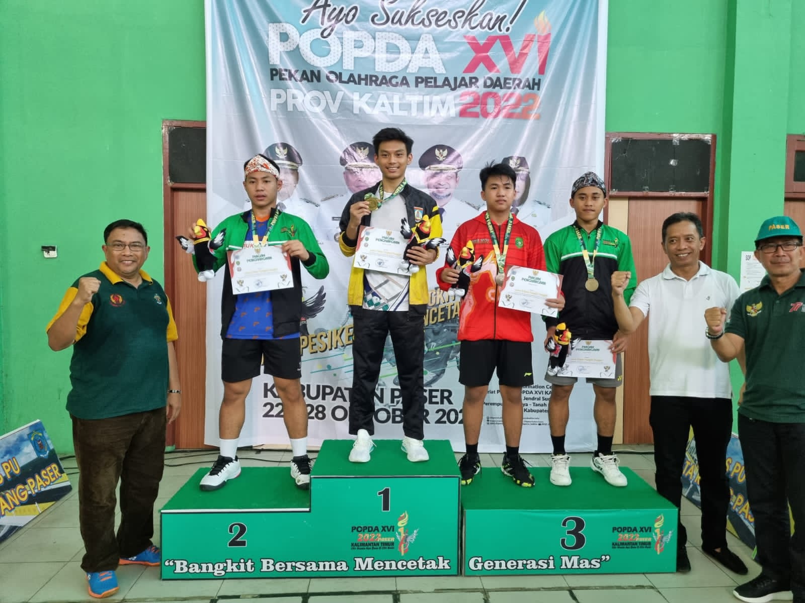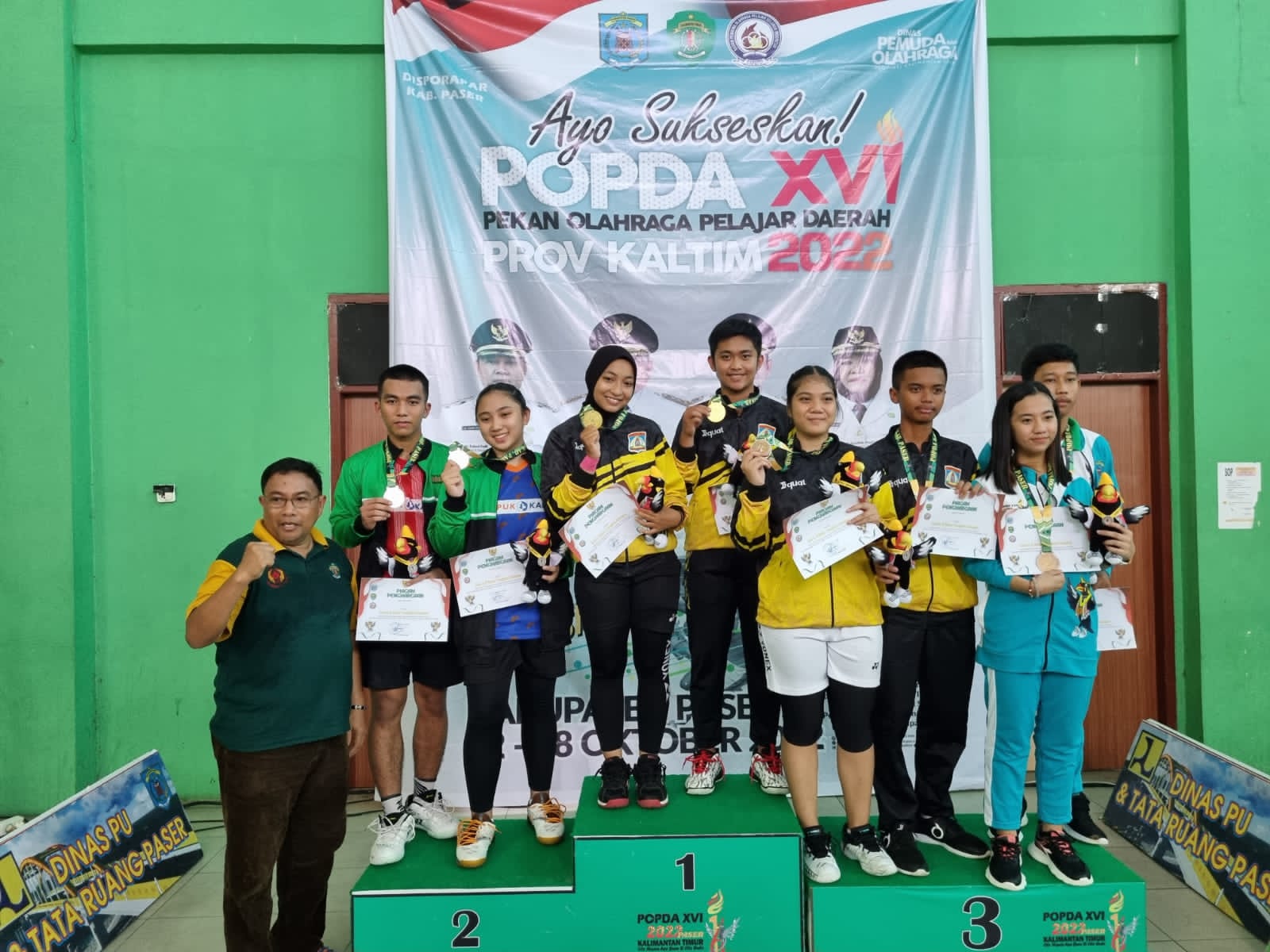 KaltimKita.com, PASER - Balikpapan tampil perkasa di cabang olahraga bulutangkis Popda XVI 2022. Dari lima nomor yang dipertandingkan, sukses meraih tiga emas yang Berlangsung di GOR PBSI, Minggu (23/10/2022). Hasil ini sekaligus memastikan diri Balikpapan sebagai juara umum.