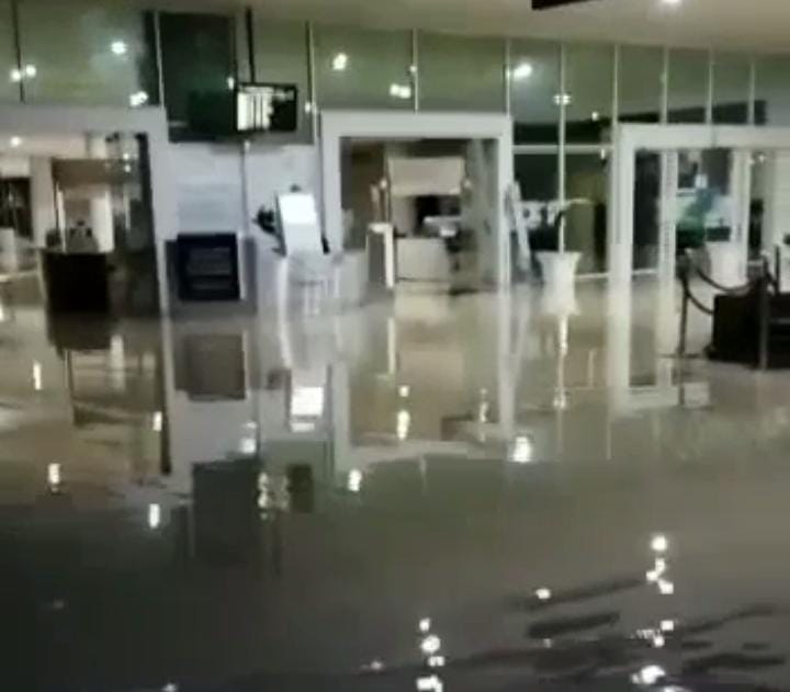 Situasi banjir tersebut terlihat dalam video yang beredar di media sosial. Tampak air menggenangi pelataran lantai dasar Bandara.