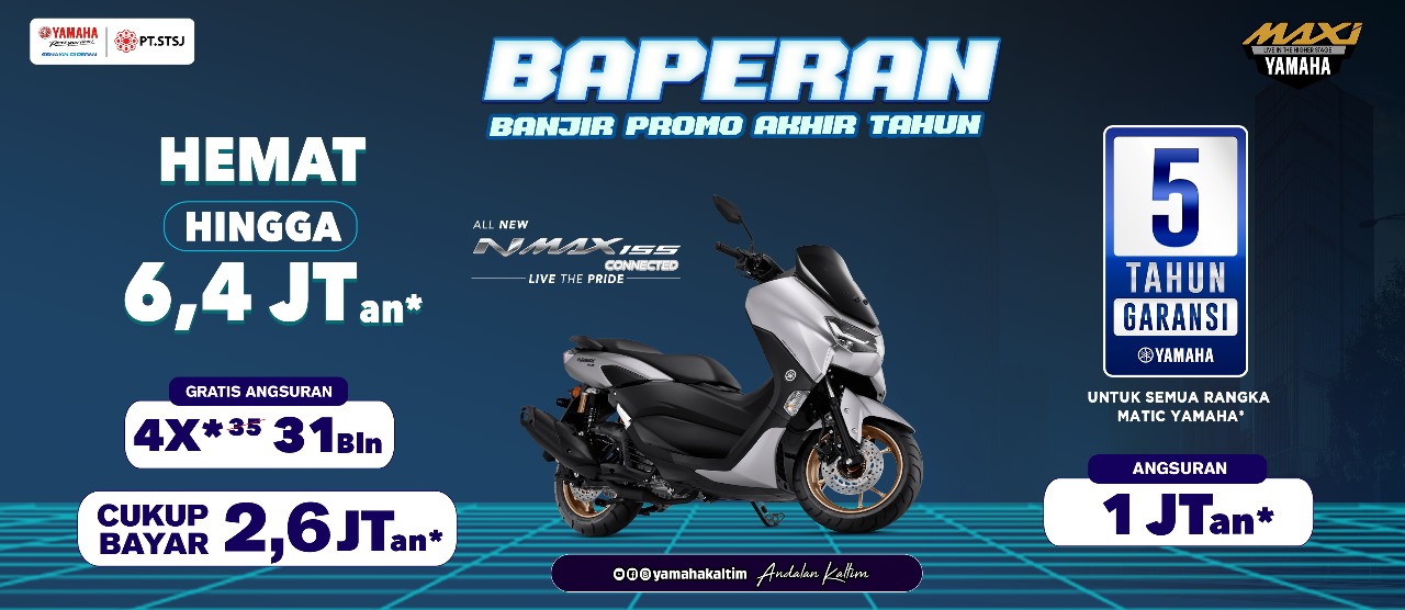 “Di bulan Desember ini kami sudah siapkan promo “Baperan” banjir promo akhir tahun. Promo Baperan ini khusus kalian yang mau motor All New Nmax 155 Connected,” terang Asisten Manajer PT STSJ Main Dealer Yamaha Kaltimtara, Efendy Ariadi.