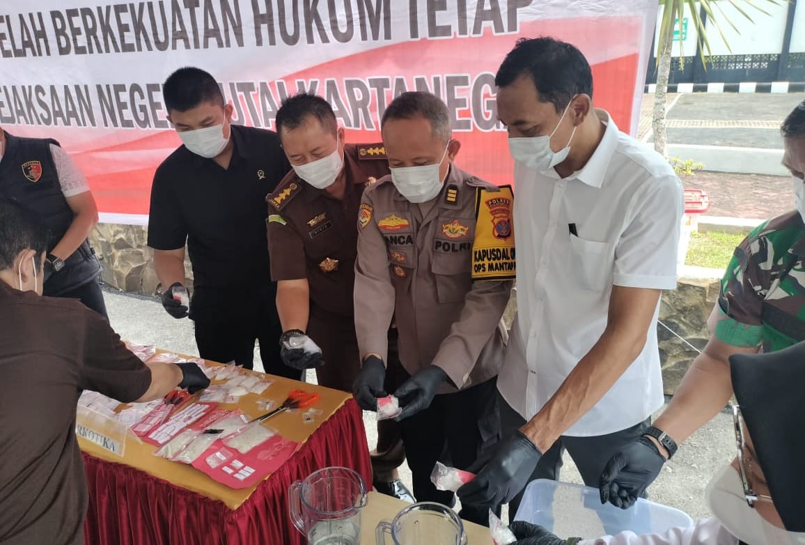Kaltimkita.com, KUKAR - Barang bukti narkotika dan senjata api rakitan dimusnahkan di halaman Kejaksaan Negeri Kabupaten Kutai Kartanegara (Kukar), belum lama ini.