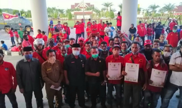 Momen di kala anggota dewan Basti bersama rekan dewan lainnya menemui perwakilan asosiasi buruh yang menuntut hak-haknya