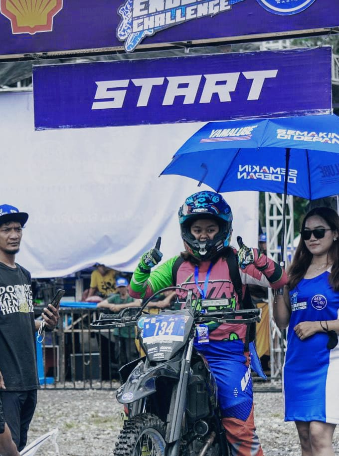 Gelaran Shell bLU cRU Yamaha Enduro Challenge ternyata juga menarik minat Nanda Helmia Pratiwi yang akrab dipanggil Tiwi, satu-satunya peserta wanita yang mengikuti ajang tersebut. Sebagai penghobi aktivitas off road, dia pun ingin merasakan berkompetisi di balapan ketahanan offroad Yamaha dengan menggunakan WR 155 R miliknya. Tiwi tercatat sebagai starter di kelas WR 155 R Community B. ”Saya turut serta juga di event Yamaha enduro ini untuk mendapatkan pengalaman dan merasakan keseruan acara bersama pengguna WR 155 R lainnya. Saya memang suka aktivitas off road, biasanya trabasan bersama komunitas WOI (WR Owner Indonesia) chapter Purwakarta. Hobi saya ini dimulai karena suka nonton dan latihan grasstrack. Di 8 bulan lalu saya lihat-lihat di media sosial tertarik dengan WR 155 R dan beli motor ini dengan uang saya sendiri. Setelah itu bergabung dengan WOI Purwakarta yang sekarang sudah menjadi keluarga kedua saya,” cerita Nanda Helmia Pratiwi, wanita muda berusia 20 tahun asal Tasikmalaya yang tinggal di Purwakarta.