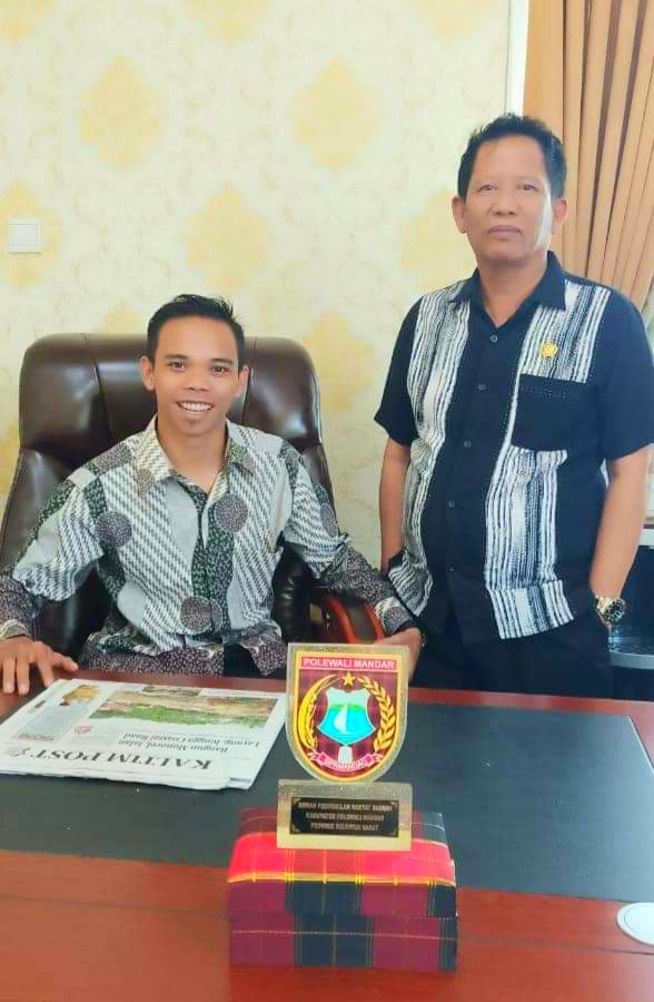 Anggota DPRD Kutim Kidang (kiri) dan sekretaris BPD Tepian Baru Juriansyah sinergi membahas beragam program lingkungan saat berada di ruang kerja kantor DPRD Kutim.