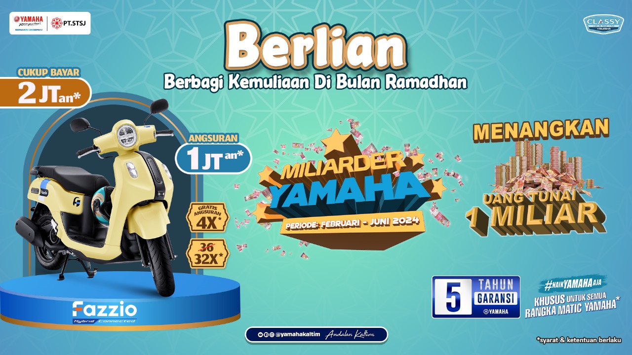 “Dengan promo Berlian alias Berbagi Kemuliaan di Bulan Ramadan ini, kami memberikan kemudaha Masyarakat untuk memiliki Yamaha Fazzio,” ungkap Asisten Manajer PT STSJ area Kaltim, Efendy Ariadi.