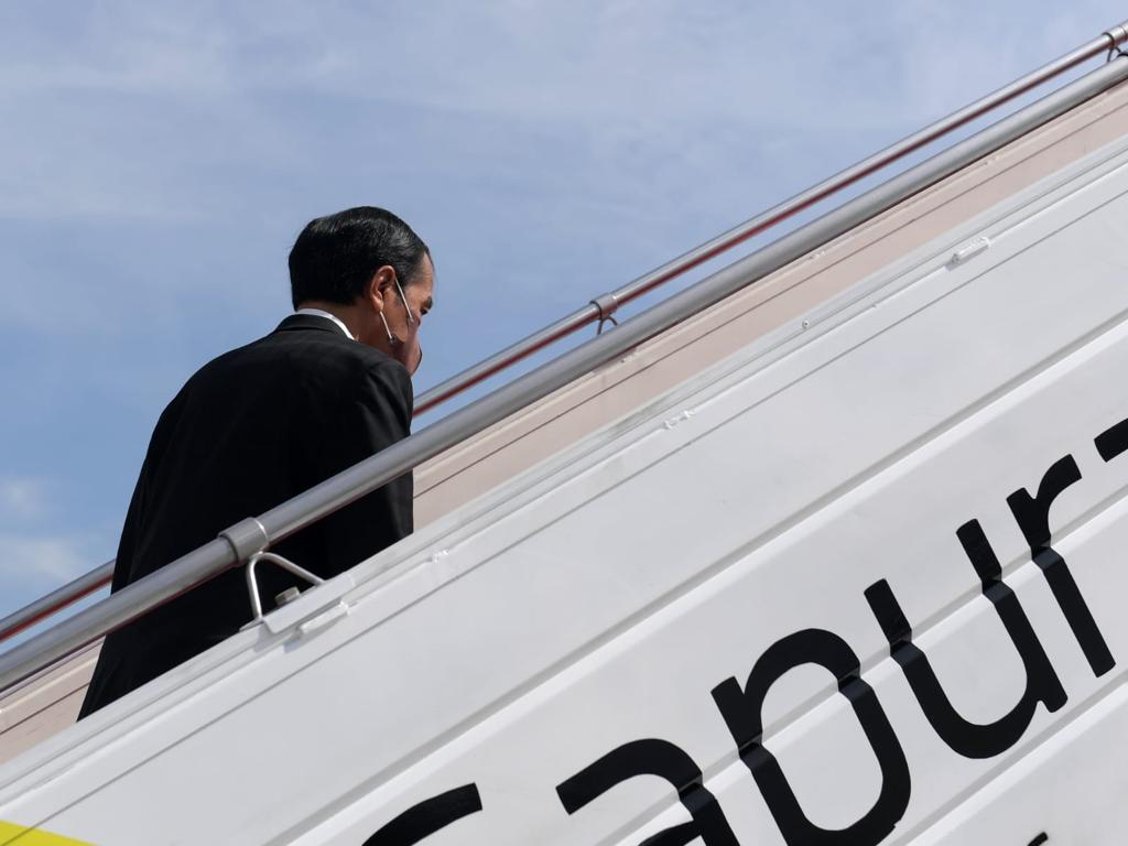 Tangerang - Presiden Joko Widodo pagi ini, Jumat, 29 Oktober 2021, bertolak menuju Roma, Italia, dalam rangka menghadiri Konferensi Tingkat Tinggi (KTT) Group of Twenty (G20). Kepala Negara bersama rombongan lepas landas dari Bandara Internasional Soekarno-Hatta, Tangerang, Banten, dengan menggunakan Pesawat Garuda Indonesia (GIA-1) pada pukul 09.15 WIB.