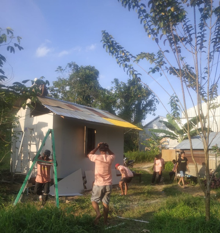 Kaltimkita.com, SAMARINDA - Para sukarelawan dari Mak Ganjar Kaltim bersatu padu membantu bedah rumah untuk satu keluarga kurang mampu di Kelurahan Sungai Keledang, Kecamatan Samarinda, Kota Samarinda, Kalimantan Timur.
