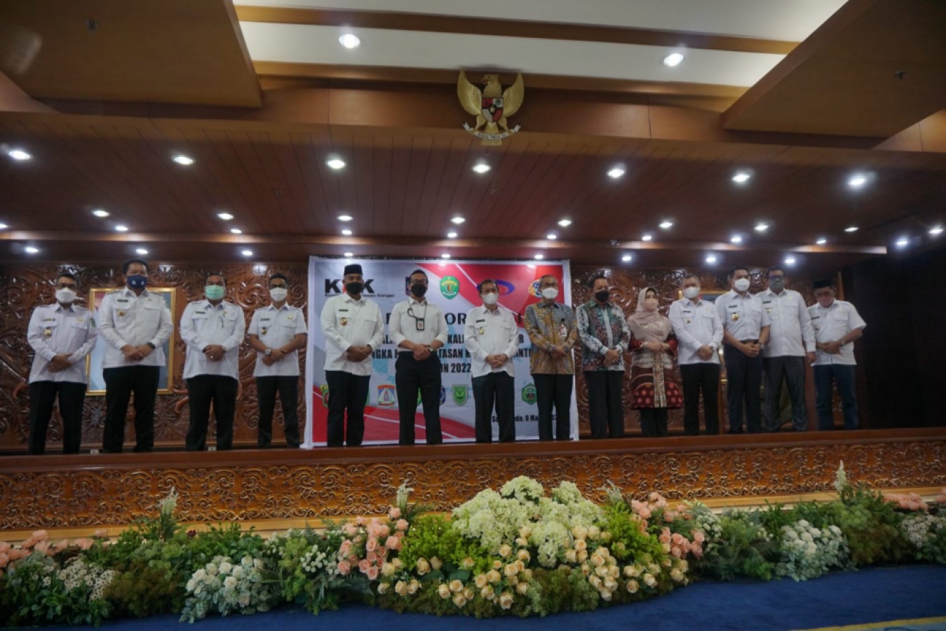 Kaltimkita.com, SAMARINDA – Wakil Gubernur Kaltim, H. Hadi Mulyadi secara resmi membuka kegiatan Rapat Koordinasi (Rakor) Kepala Daerah se- Kalikantan Timur Dalam rangka pemberantasan korupsi terintegrasi Tahun 2022 bertempat di ruang Ruhui Rahayu Kantor Gubernur Kaltim, Jalan Gajah Mada, Rabu(9/3). Turut hadir pada acara tersebut Inspektur Jenderal Kemendagri, Kepala Perwakilan BPKP, Kepala Kanwil ATR/BPN Provinsi Kaltim, 10 Kepala Daerah Kabupaten/Kota se- Kaltim serta Forkompinda.